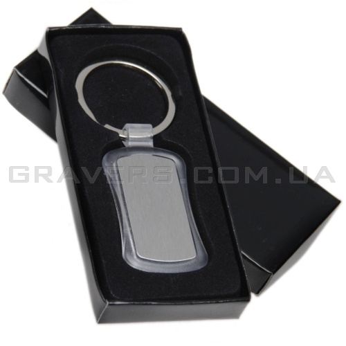 Металлический брелок прямоугольной формы, прозрачный пластиковый корпус с металлическими вставками с обеих сторон. Возможность нанесения алмазной гравировки как с одной так и c двух сторон брелка. Диаметр металического кольца - 35мм. Упакован в картонную коробочку.
