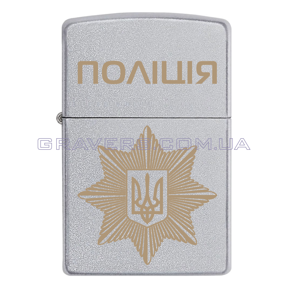 Оригинальная зажигалка Zippo Classic Chrome – классическая бензиновая зажигалка Zippo серебристого цвета с индивидуальной гравировкой эмблемы Национальная полиция Украины – центральный орган исполнительной власти, который служит общественности путем обеспечения охраны прав и свобод человека, противодействия преступности, поддержанию публичной безопасности и порядка. Деятельность Национальной полиции направляется и координируется Кабинетом министров Украины через Министра внутренних дел по закону.