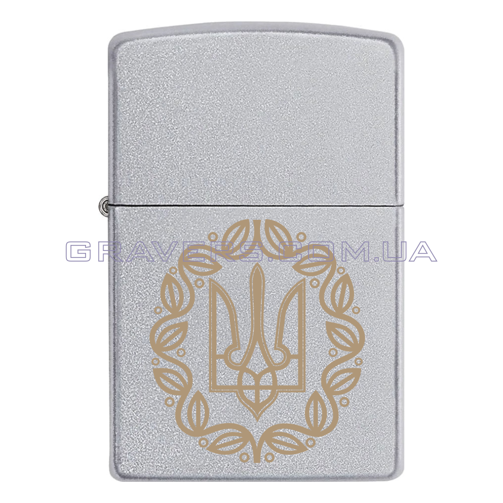 Оригинальная зажигалка Zippo Classic Chrome - классическая бензиновая зажигалка Zippo серебристого цвета с индивидуальной гравировкой знака Малый герб Украинской Народной Республики