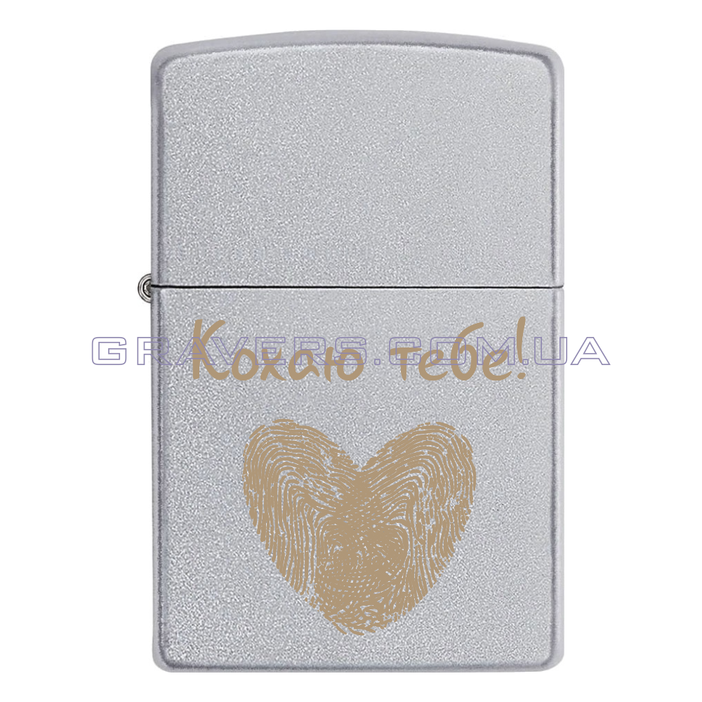 Оригинальная зажигалка Zippo Classic Chrome - классическая бензиновая зажигалка Zippo серебристого цвета с индивидуальной гравировкой надписи с гравировкой «Люблю тебя!»