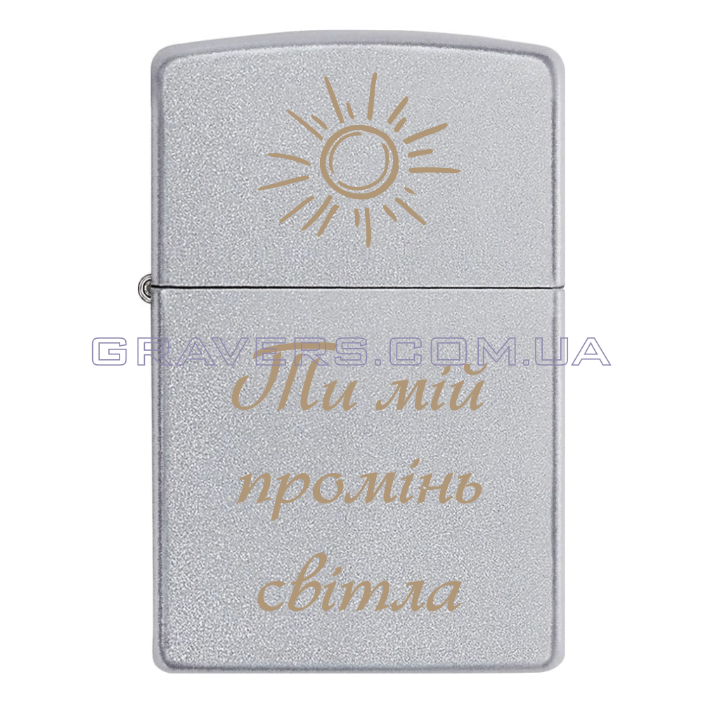 Оригинальная зажигалка Zippo Classic Chrome - классическая бензиновая зажигалка Zippo серебристого цвета с индивидуальной гравировкой надписи с гравировкой «Ты мой лучик света»