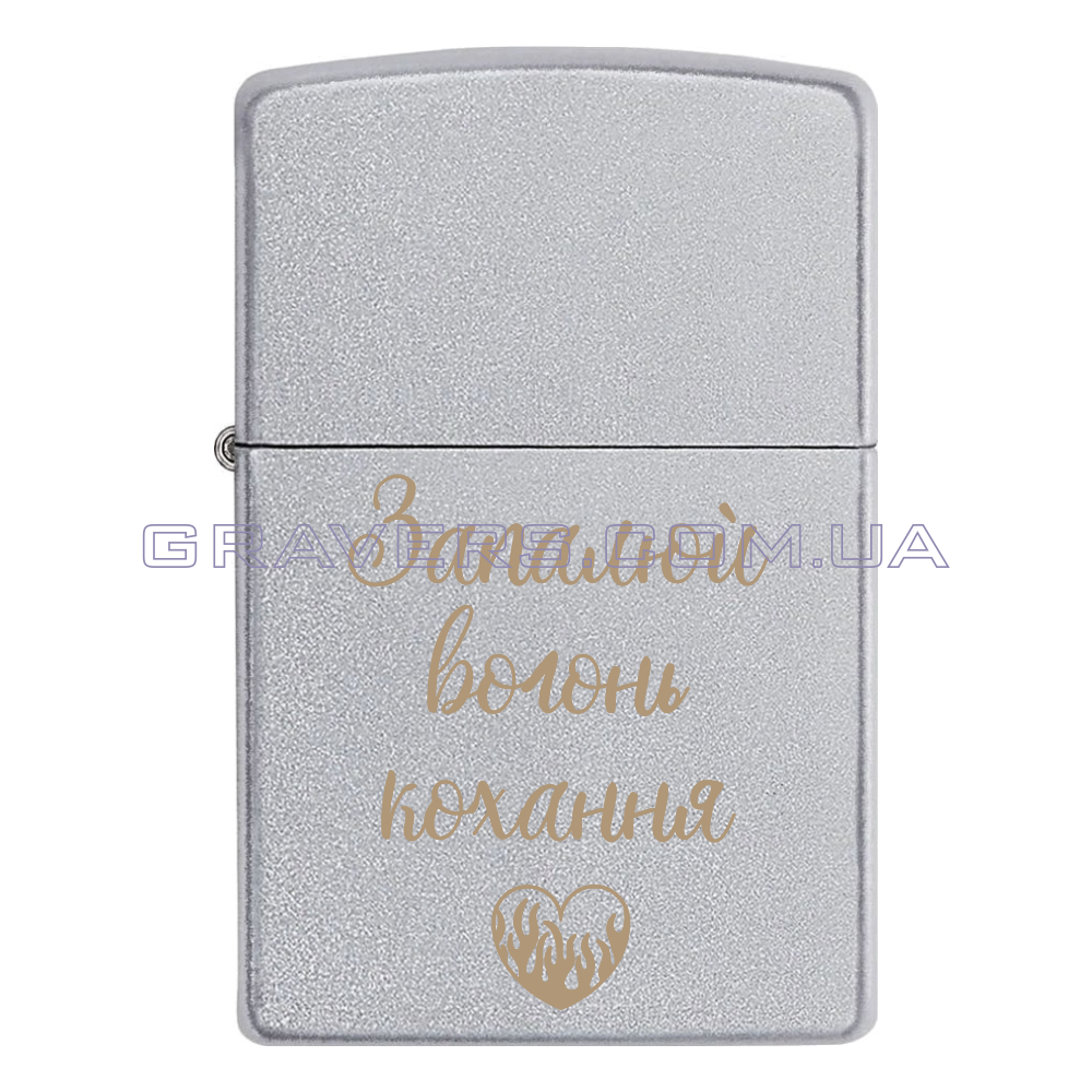 Оригинальная зажигалка Zippo Classic Chrome - классическая бензиновая зажигалка Zippo серебристого цвета с индивидуальной гравировкой надписи с гравировкой «Зажигай огонь любви»