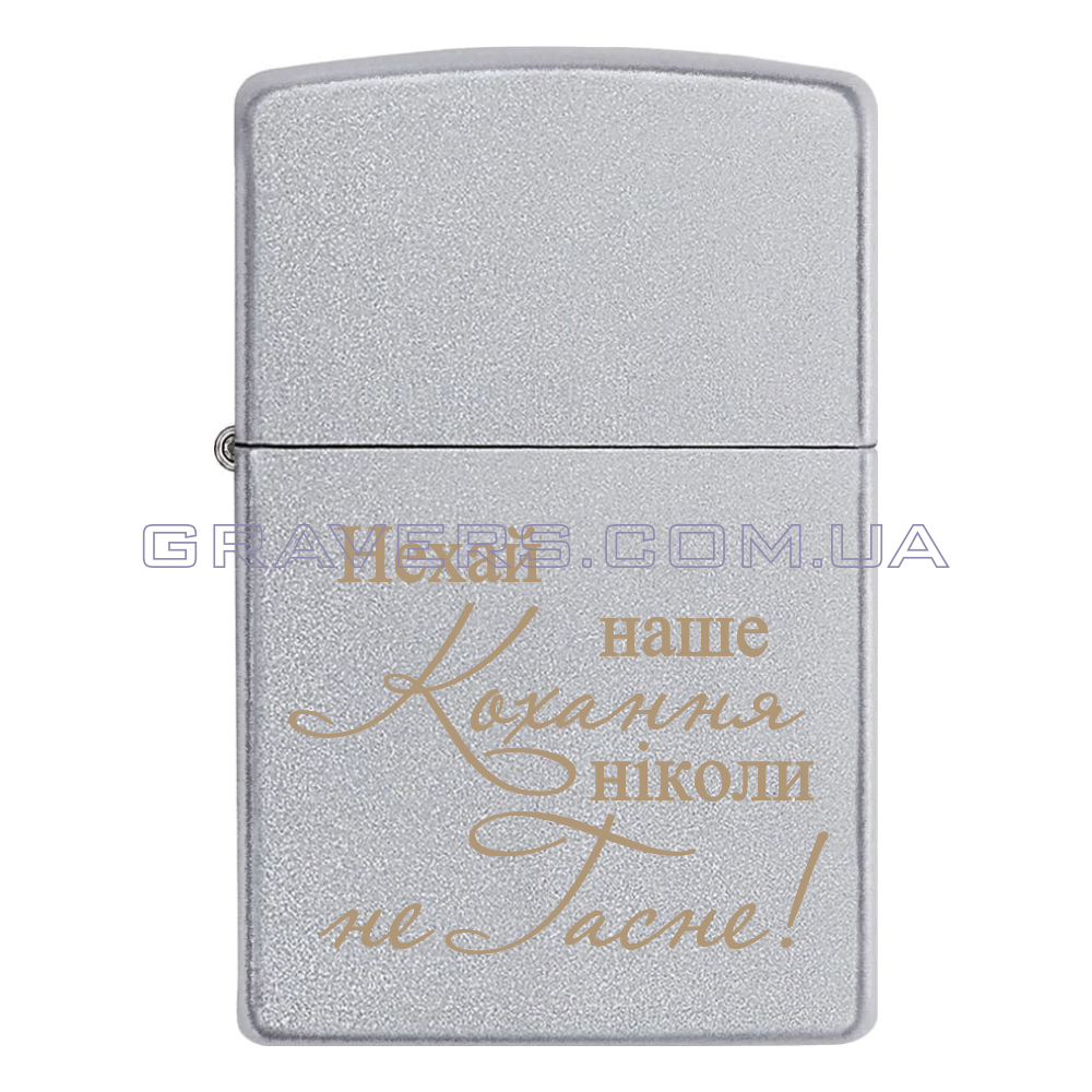Оригинальная зажигалка Zippo Classic Chrome - классическая бензиновая зажигалка Zippo серебристого цвета с индивидуальной гравировкой надписи «Нехай наше Кохання ніколи не Гасне»
