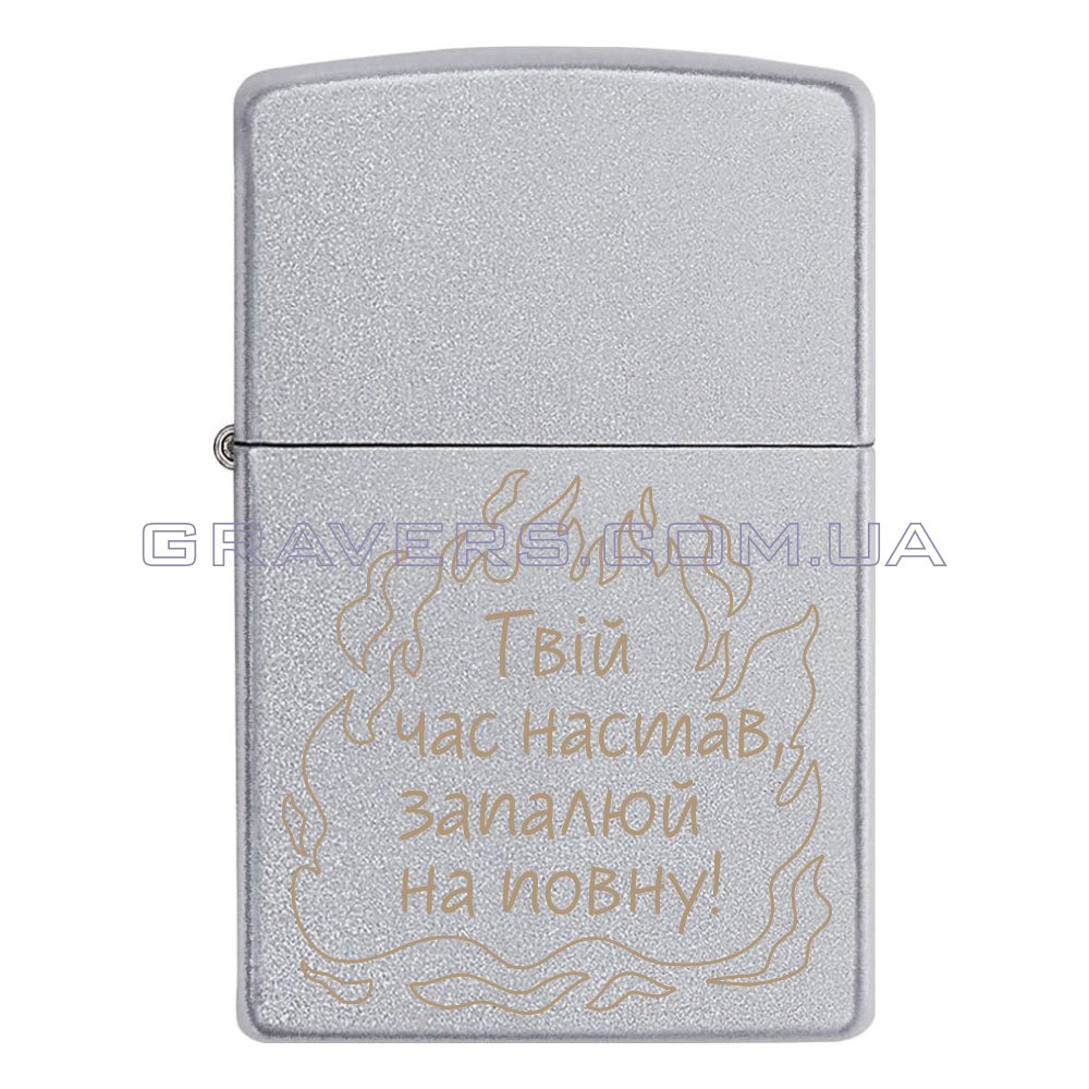 Оригинальная зажигалка Zippo Classic Chrome - классическая бензиновая зажигалка Zippo серебристого цвета с индивидуальной гравировкой надписи «Твое время настало, зажигай по полной!»