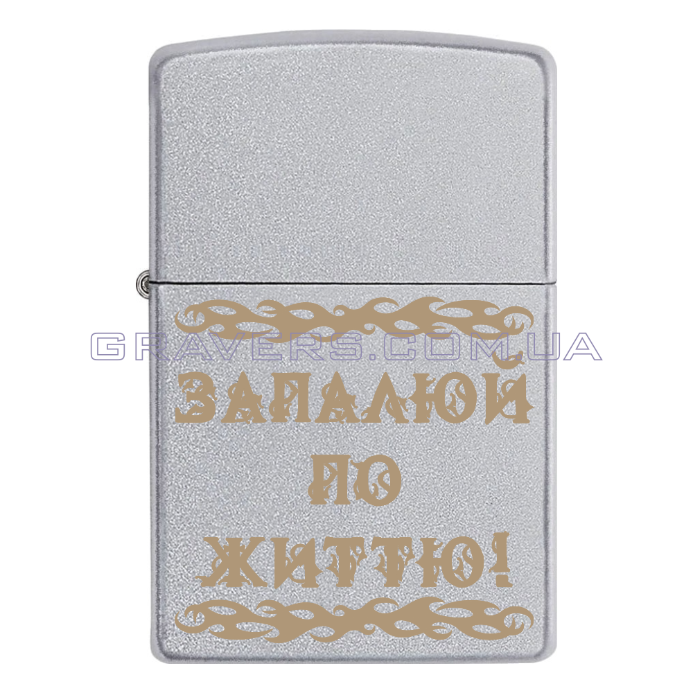 Оригинальная зажигалка Zippo Classic Chrome - классическая бензиновая зажигалка Zippo серебристого цвета с индивидуальной гравировкой надписи «Запалюй по життю!»