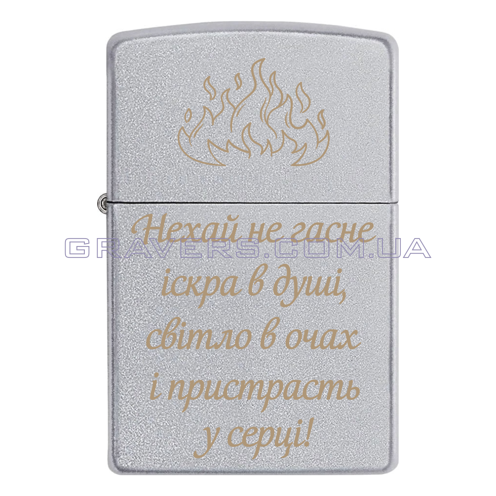 Оригинальная зажигалка Zippo Classic Chrome - классическая бензиновая зажигалка Zippo серебристого цвета с индивидуальной гравировкой надписи «Пусть не гаснет искра в душе, свет в глазах и страсть в серце»»