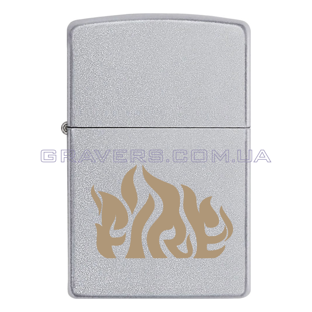 Оригинальная зажигалка Zippo Classic Chrome - классическая бензиновая зажигалка Zippo серебристого цвета с индивидуальной гравировкой надписи «Fire»