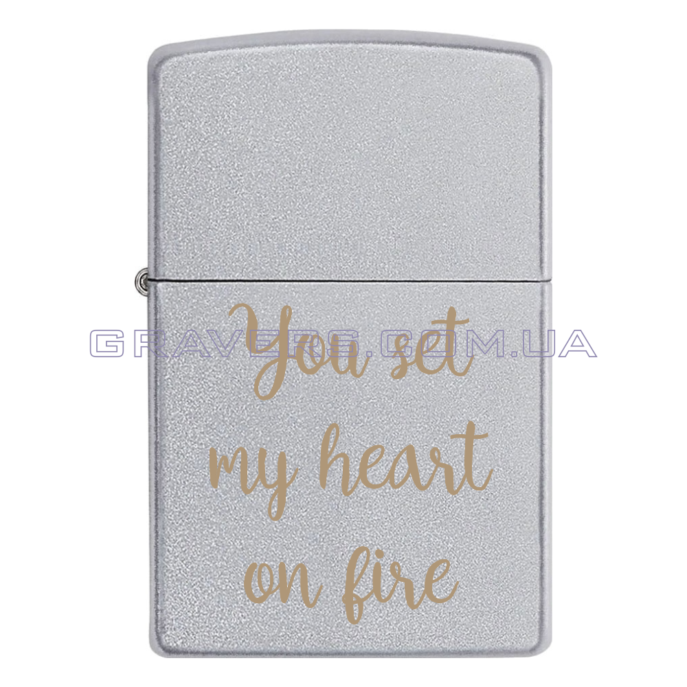 Оригинальная зажигалка Zippo Classic Chrome - классическая бензиновая зажигалка Zippo серебристого цвета с индивидуальной гравировкой надписи «You set my heart on fire»