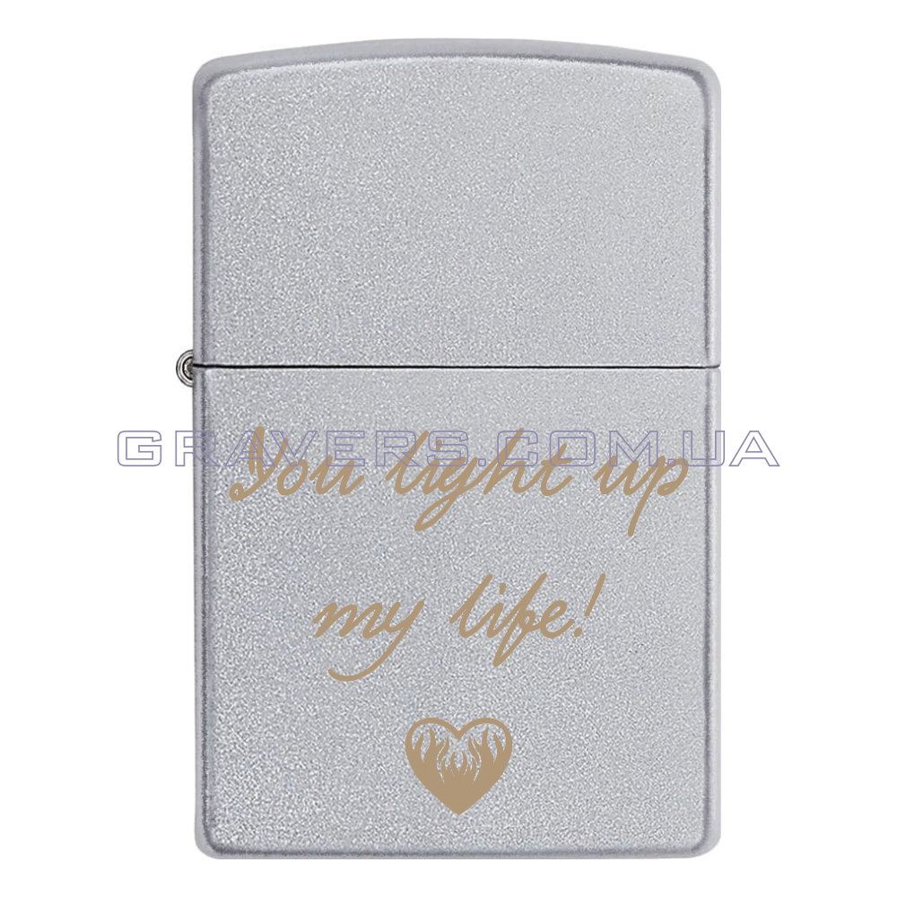 Оригинальная зажигалка Zippo Classic Chrome - классическая бензиновая зажигалка Zippo серебристого цвета с индивидуальной гравировкой надписи «You light up my life!» - Ты освещаешь мою жизнь.