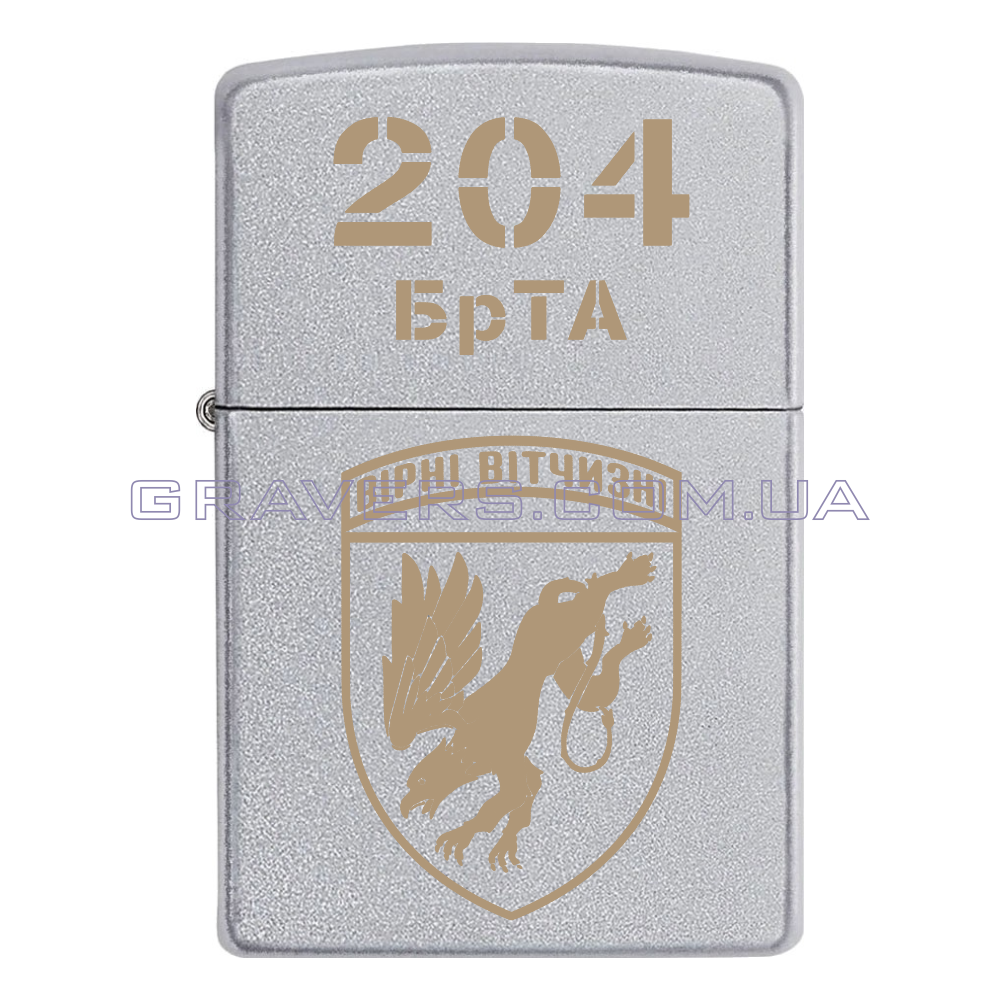 Оригинальная зажигалка Zippo Classic Chrome - классическая бензиновая зажигалка Zippo серебристого цвета с индивидуальной гравировкой знака - 204 Севастопольская бригада тактической авиации имени Александра Покрышкина (204 БрТА)
