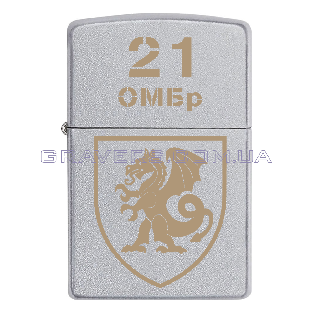 Оригинальная зажигалка Zippo Classic Chrome - классическая бензиновая зажигалка Zippo серебристого цвета с индивидуальной гравировкой знака - 21-я отдельная механизированная бригада (21 ОМБр)