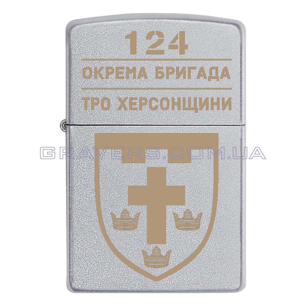 Оригинальная зажигалка Zippo Classic Chrome - классическая бензиновая зажигалка Zippo серебристого цвета с индивидуальной гравировкой знака - 124 отдельная бригада территориальной обороны (124 ОБрТрО)