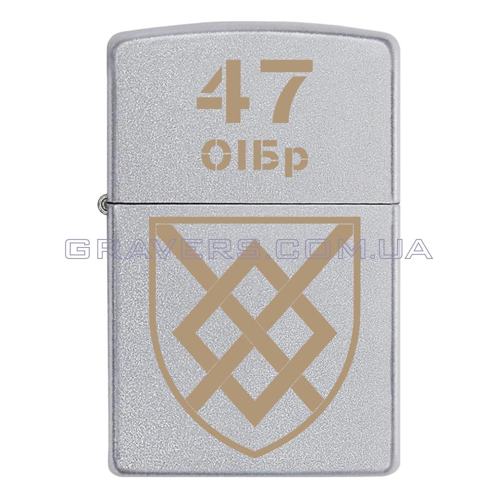 Оригинальная зажигалка Zippo Classic Chrome - классическая бензиновая зажигалка Zippo серебристого цвета с индивидуальной гравировкой знака 47 отдельная инженерная бригада (47 ОИБр)