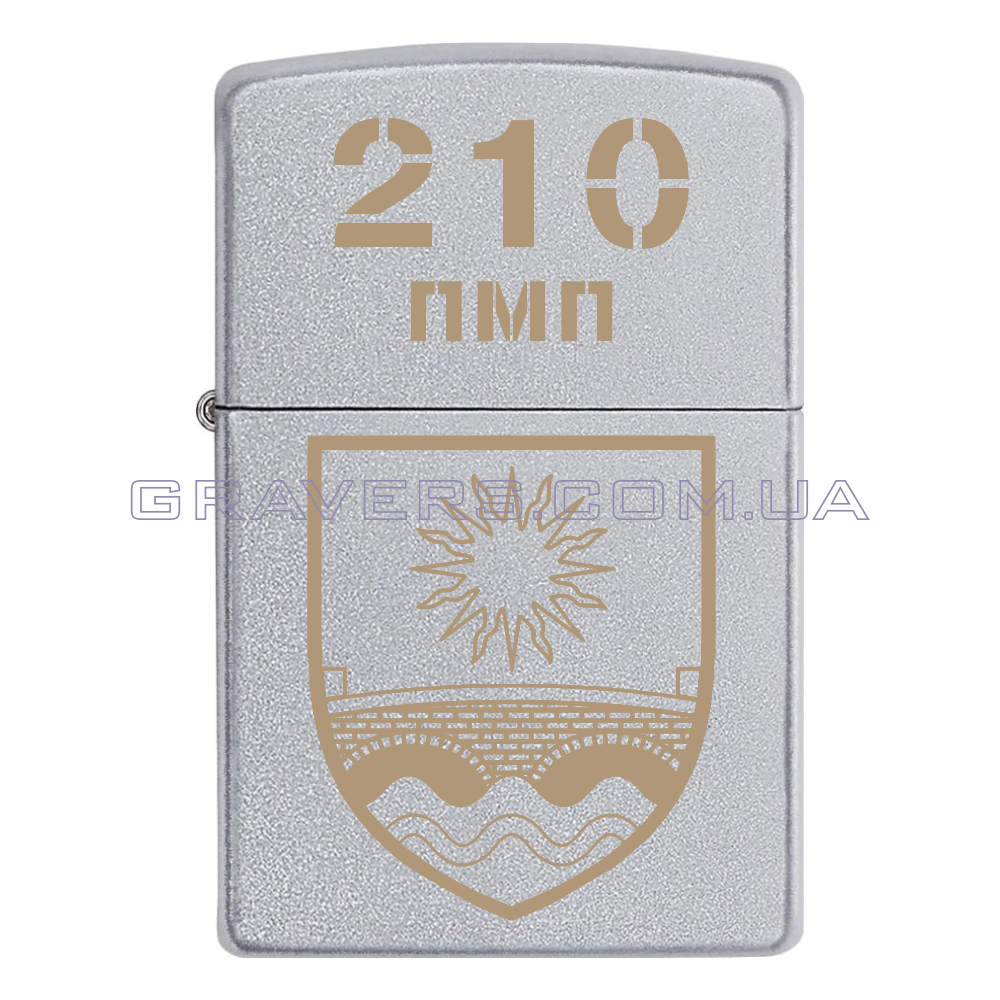 Оригинальная зажигалка Zippo Classic Chrome - классическая бензиновая зажигалка Zippo серебристого цвета с индивидуальной гравировкой знака 210-й понтонно-мостовой полк (210 ПМП)