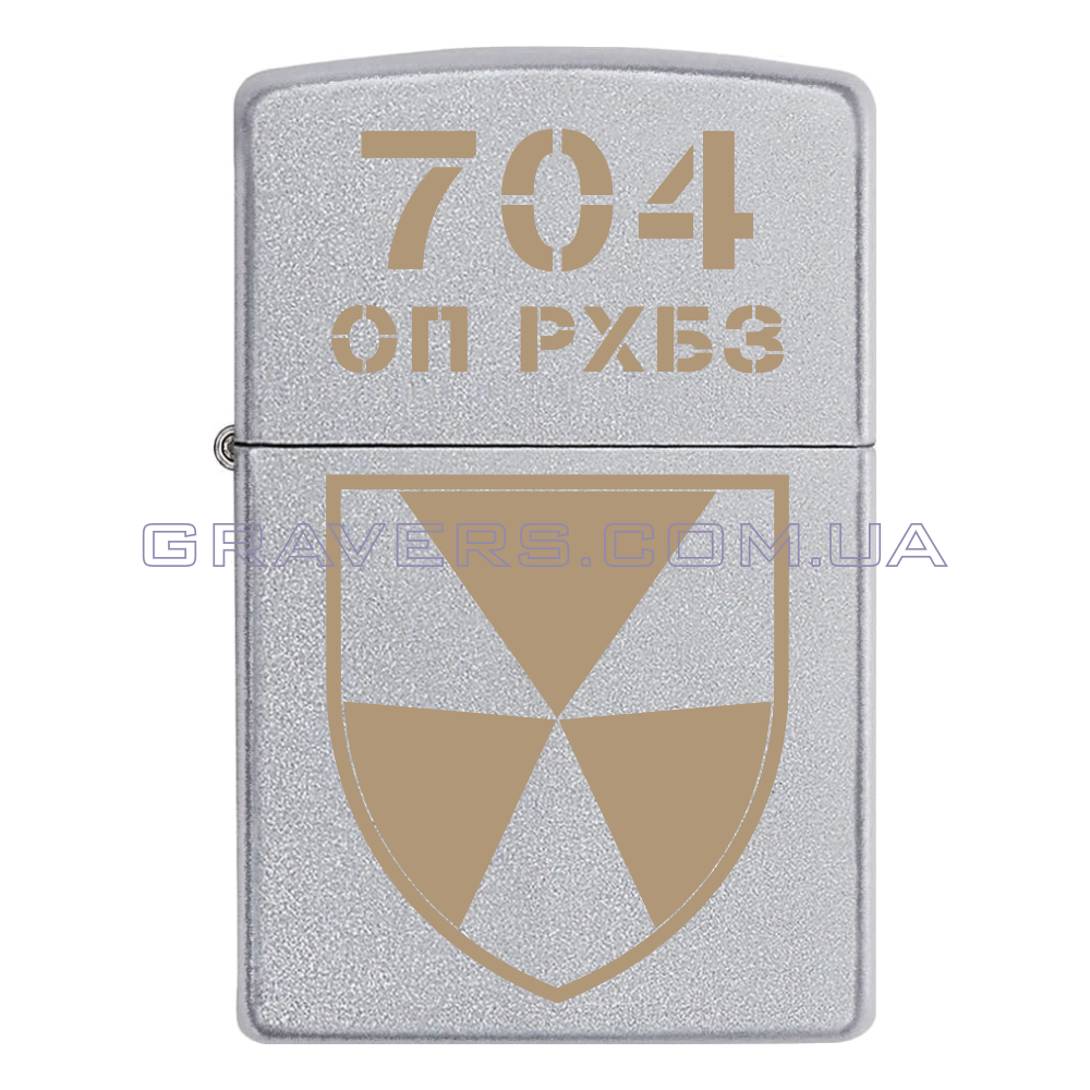 Оригинальная зажигалка Zippo Classic Chrome - классическая бензиновая зажигалка Zippo серебристого цвета с индивидуальной гравировкой знака - 704 отдельный полк радиационной, химической, биологической защиты (704 ОП РХБЗ)