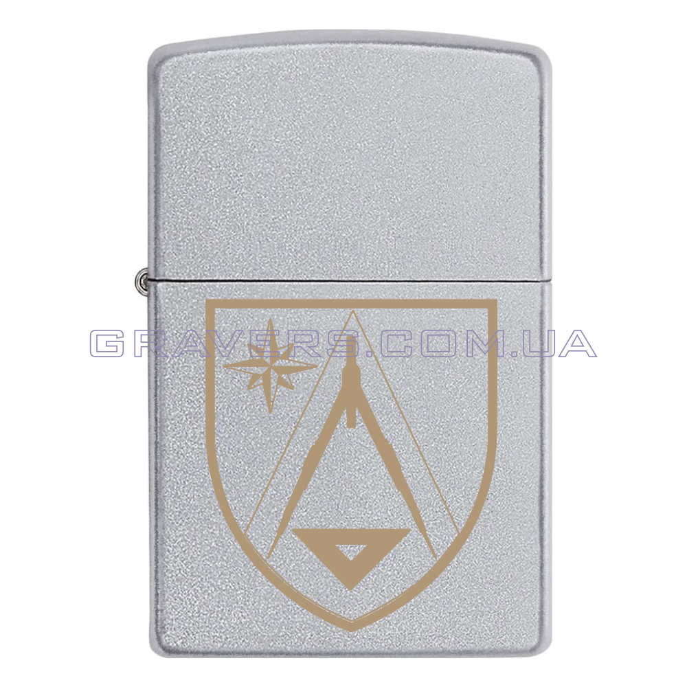 Оригинальная зажигалка Zippo Classic Chrome - классическая бензиновая зажигалка Zippo серебристого цвета с индивидуальной гравировкой знака - 22-я военно-картографическая часть