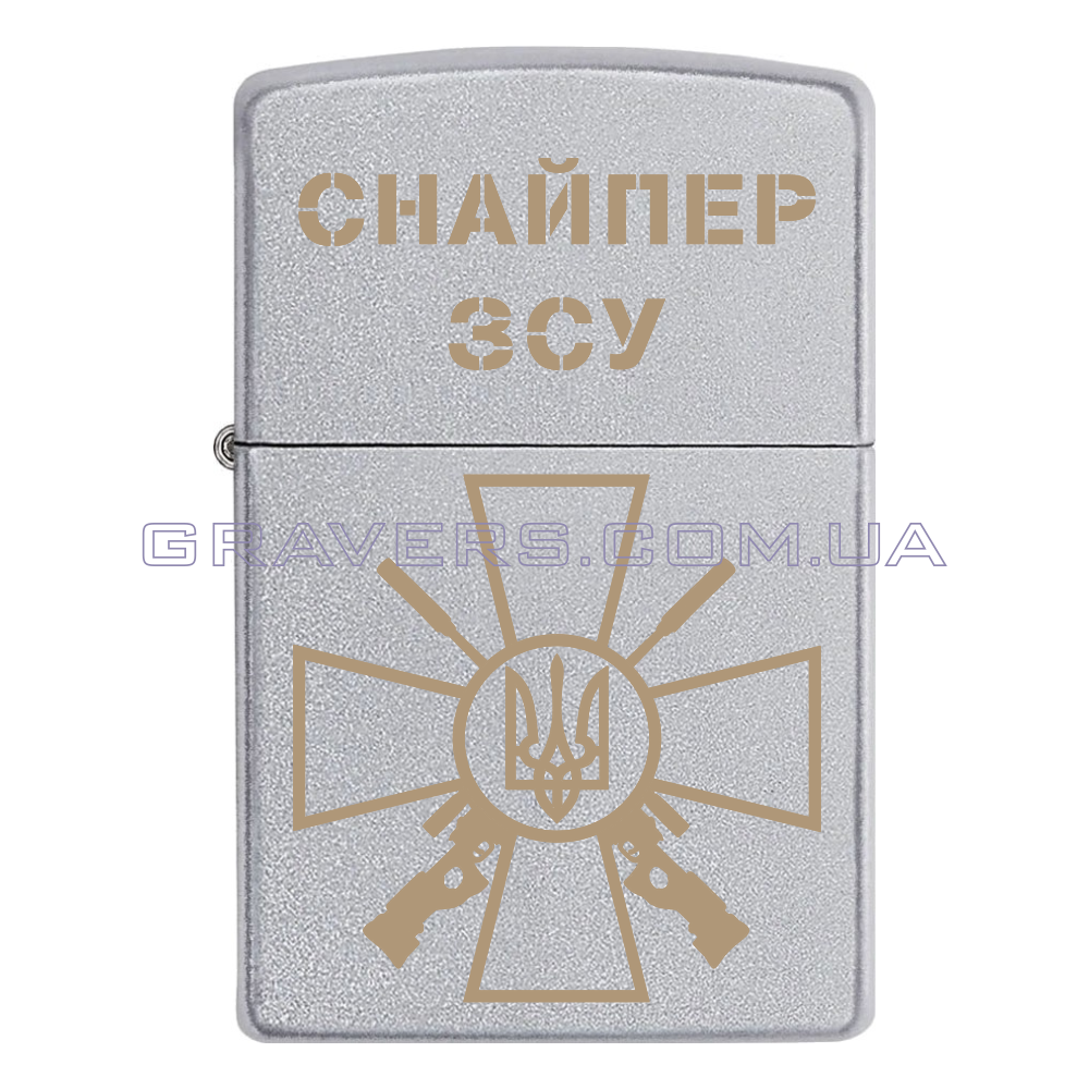 Оригинальная зажигалка Zippo Classic Chrome - классическая бензиновая зажигалка Zippo серебристого цвета с индивидуальной гравировкой знака - Снайпер ВСУ
