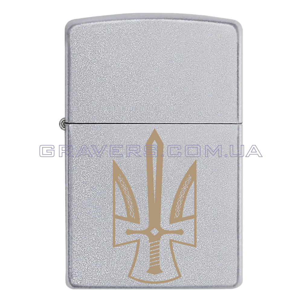 Оригинальная зажигалка Zippo Classic Chrome - классическая бензиновая зажигалка Zippo серебристого цвета с индивидуальной гравировкой - «Меч Трезубец»
