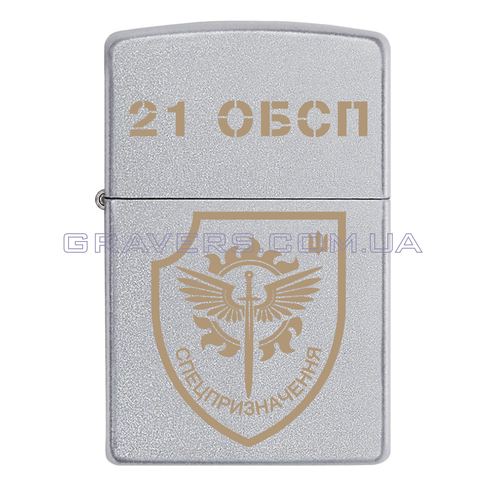 Оригінальна запальничка Zippo Classic Chrome - класична бензинова запальничка Zippo сріблястого кольору з індивідуальним гравіюванням знаку 21-й окремий батальйон спеціального призначення (21 ОБСП) - Окремої президентської бригади імені гетьмана Богдана Хмельницького (ОПБр)