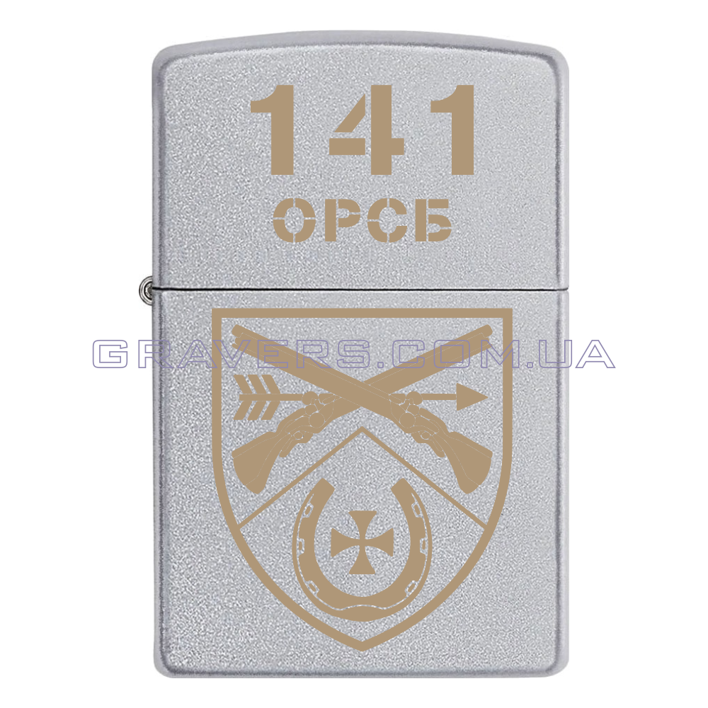 Оригінальна запальничка Zippo Classic Chrome - класична бензинова запальничка Zippo сріблястого кольору з індивідуальним гравіюванням шеврону 141 Окрема Резервна Стрілецька Бригада