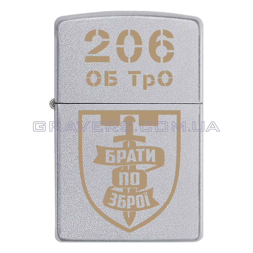 Оригінальна запальничка Zippo Classic Chrome - класична бензинова запальничка Zippo сріблястого кольору з індивідуальним гравіюванням - 206-й окремий батальйон територіальної оборони (206 ОбТрО)