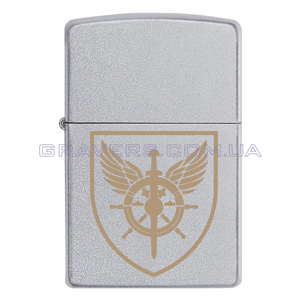 Оригінальна запальничка Zippo Classic Chrome - класична бензинова запальничка Zippo сріблястого кольору з індивідуальним гравіюванням знаку - Служба військових сполучень тилу ЗСУ