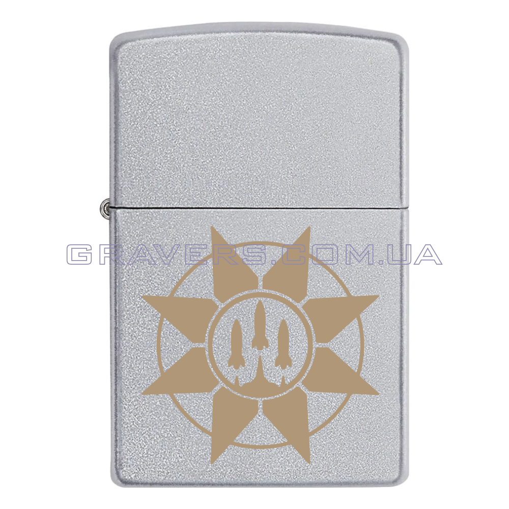 Оригінальна запальничка Zippo Classic Chrome - класична бензинова запальничка Zippo сріблястого кольору з індивідуальним гравіюванням знаку -   Головне управління ракетних військ і артилерії та безпілотних систем