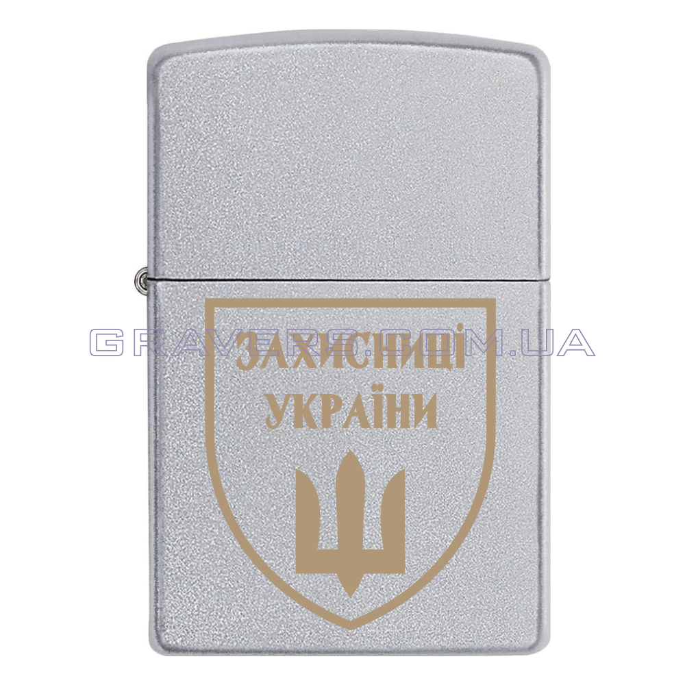 Оригінальна запальничка Zippo Classic Chrome - класична бензинова запальничка Zippo сріблястого кольору з індивідуальним гравіюванням. Щит шеврон Тризуб ЗСУ «Захисниці України»