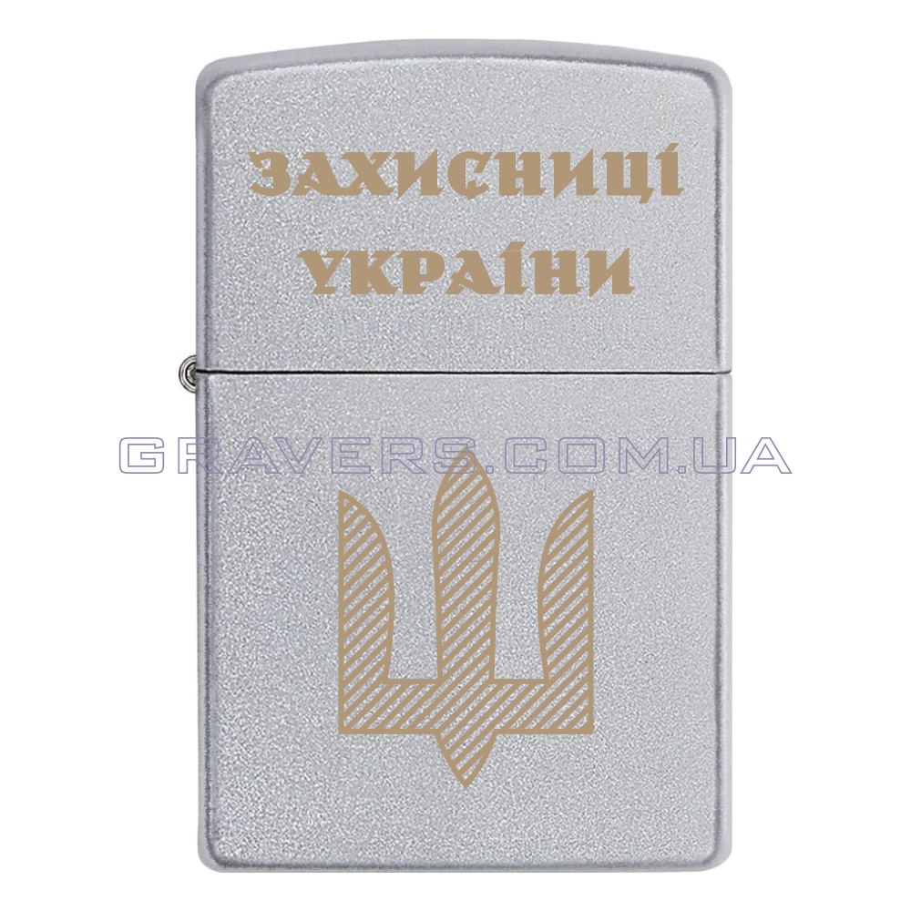 Оригінальна запальничка Zippo Classic Chrome - класична бензинова запальничка Zippo сріблястого кольору з індивідуальним гравіюванням. «Захисниці України» Нарукавний Знак - Тризуб ЗСУ