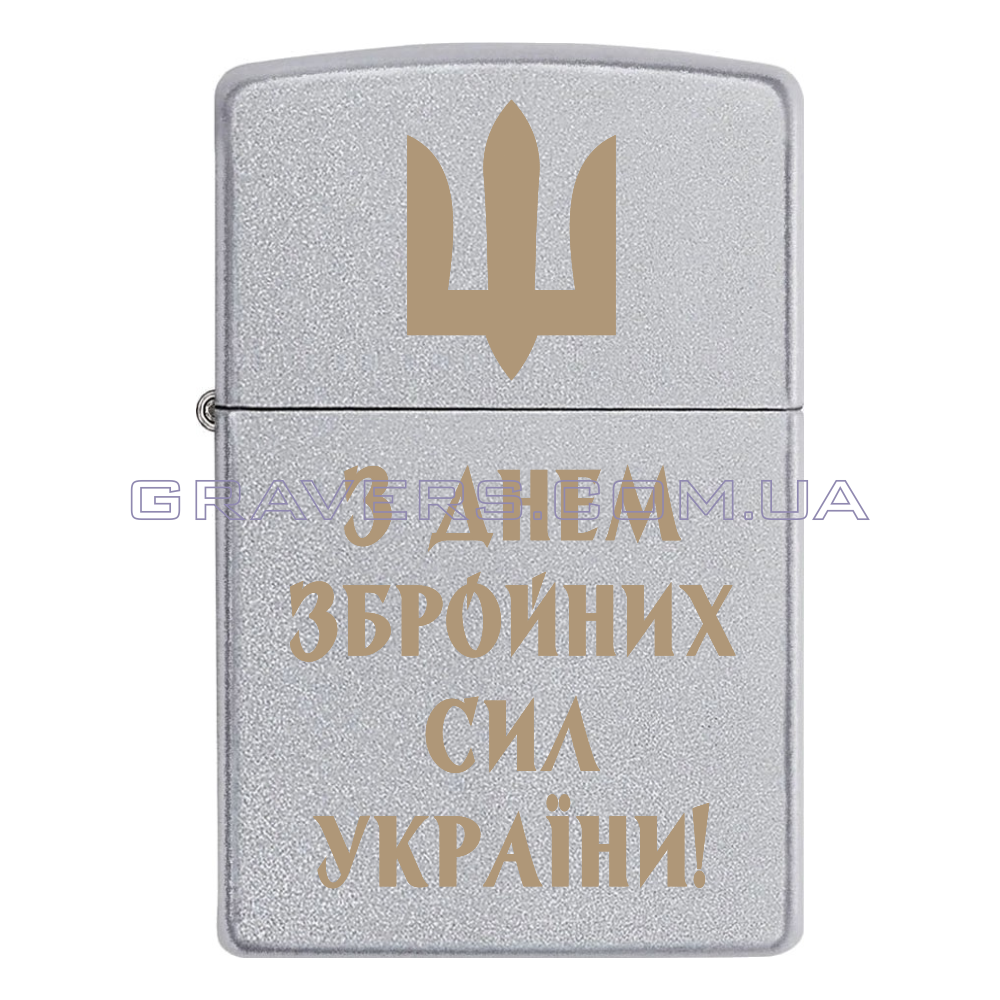 Оригінальна запальничка Zippo Classic Chrome - класична бензинова запальничка Zippo сріблястого кольору з індивідуальним гравіюванням на подарунок. Військовий Тризуб «З Днем Збройних Сил України!»