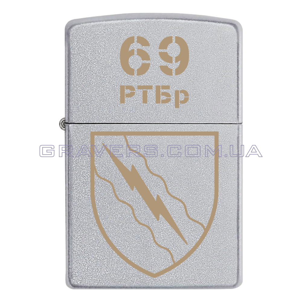 Оригінальна запальничка Zippo Classic Chrome - класична бензинова запальничка Zippo сріблястого кольору з індивідуальним гравіюванням знака - 69 радіотехнічна бригада (69 РТБр)