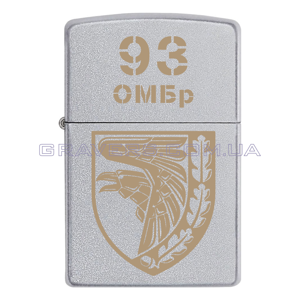 Оригінальна запальничка Zippo Classic Chrome - класична бензинова запальничка Zippo сріблястого кольору з індивідуальним гравіюванням знаку 93-тя окрема механізована бригада «Холодний Яр»