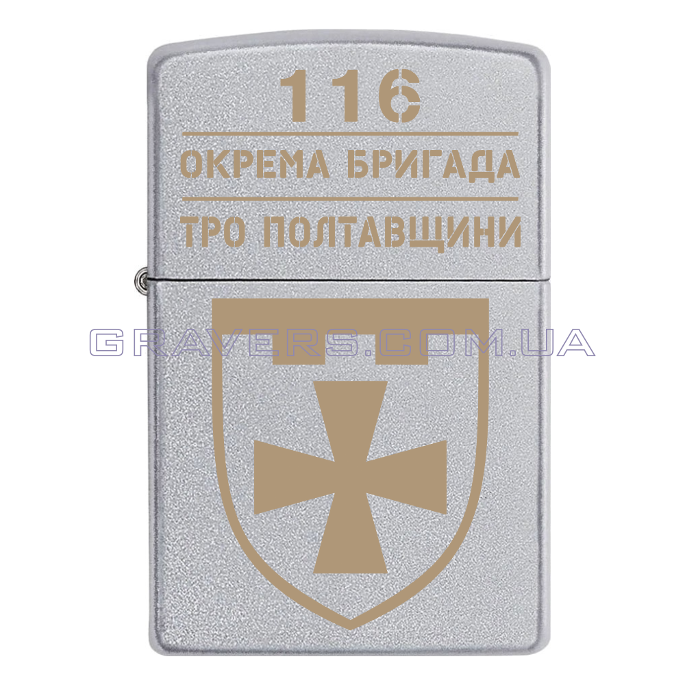 Оригінальна запальничка Zippo Classic Chrome - класична бензинова запальничка Zippo сріблястого кольору з індивідуальним гравіюванням знака - 116-та окрема бригада територіальної оборони (116 ОБрТрО, в/ч А7044)