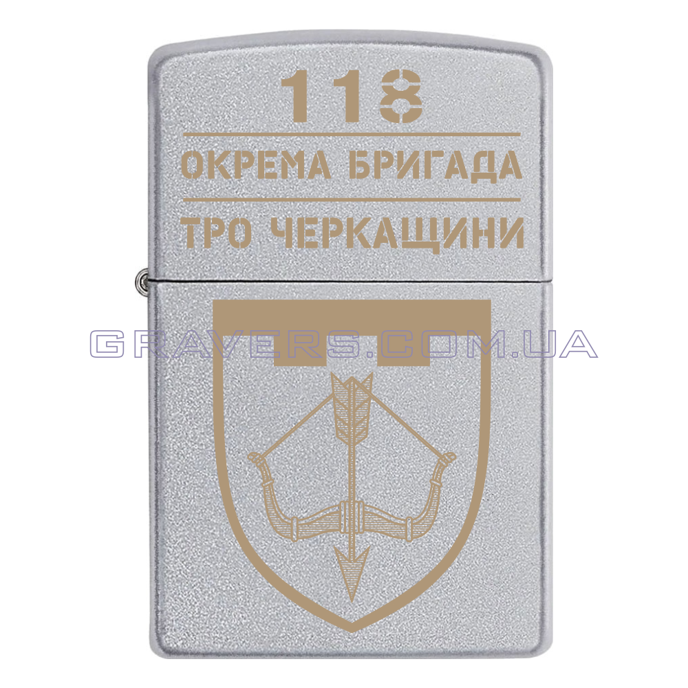 Оригінальна запальничка Zippo Classic Chrome - класична бензинова запальничка Zippo сріблястого кольору з індивідуальним гравіюванням знака -  118-та окрема бригада територіальної оборони (118 ОБрТрО)
