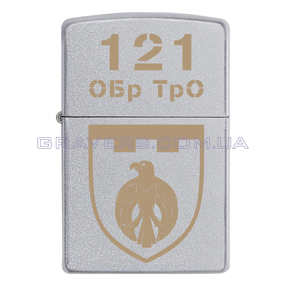 Оригінальна запальничка Zippo Classic Chrome - класична бензинова запальничка Zippo сріблястого кольору з індивідуальним гравіюванням знака - 121-ша окрема бригада територіальної оборони (121 ОБрТрО, в/ч А7049)