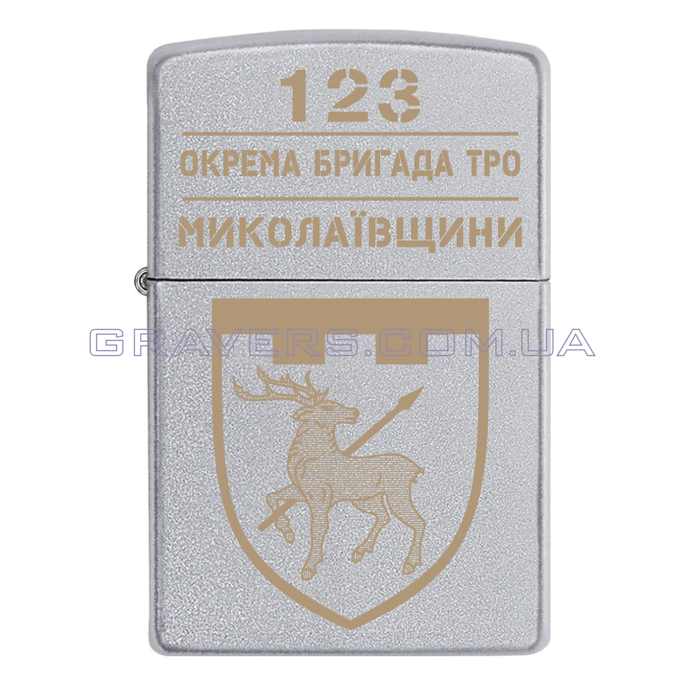 Оригінальна запальничка Zippo Classic Chrome - класична бензинова запальничка Zippo сріблястого кольору з індивідуальним гравіюванням знака - 123-тя окрема бригада територіальної оборони (123 ОБрТрО)