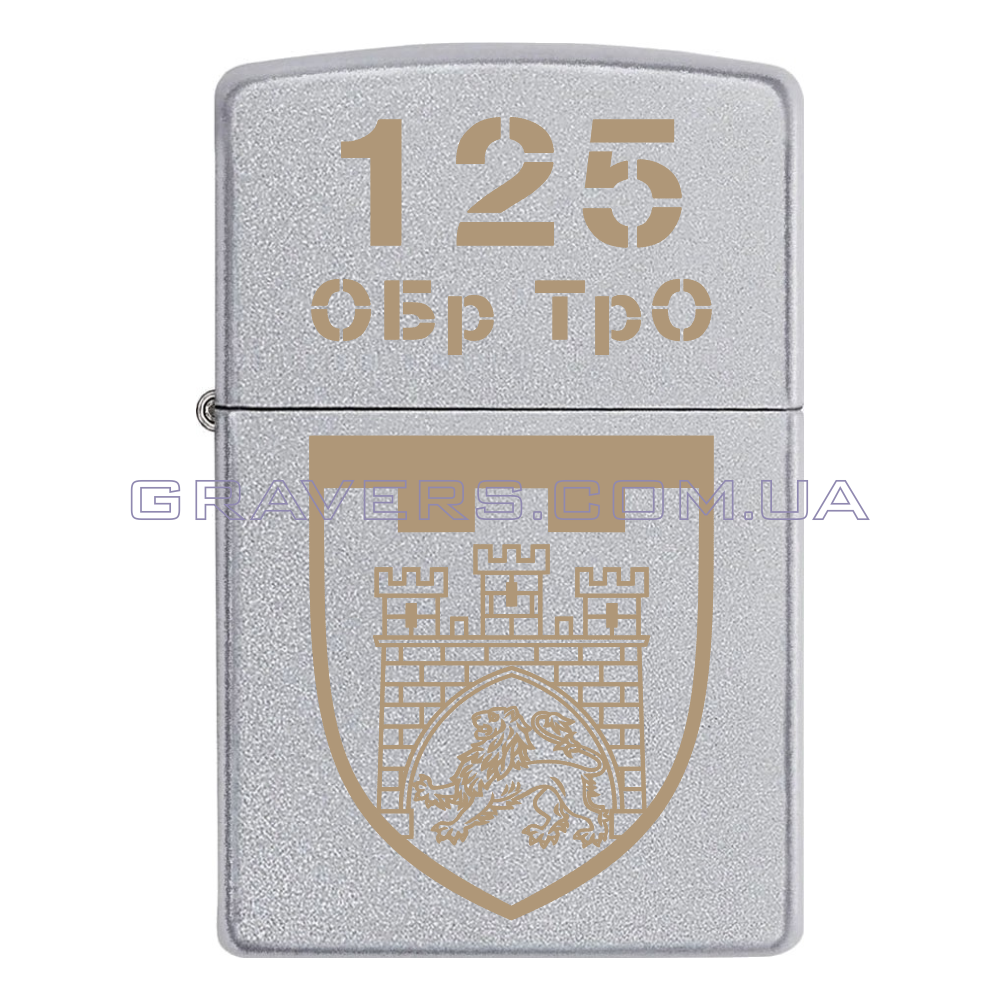 Оригінальна запальничка Zippo Classic Chrome - класична бензинова запальничка Zippo сріблястого кольору з індивідуальним гравіюванням знака -   125-та окрема бригада територіальної оборони Збройних сил України (125 ОБр ТрО)