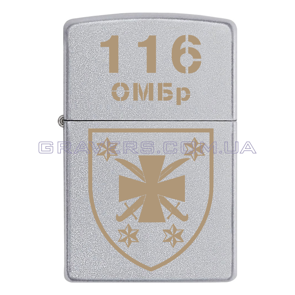 Оригінальна запальничка Zippo Classic Chrome - класична бензинова запальничка Zippo сріблястого кольору з індивідуальним гравіюванням знака - 116 окрема механізована бригада (116 ОМБр)