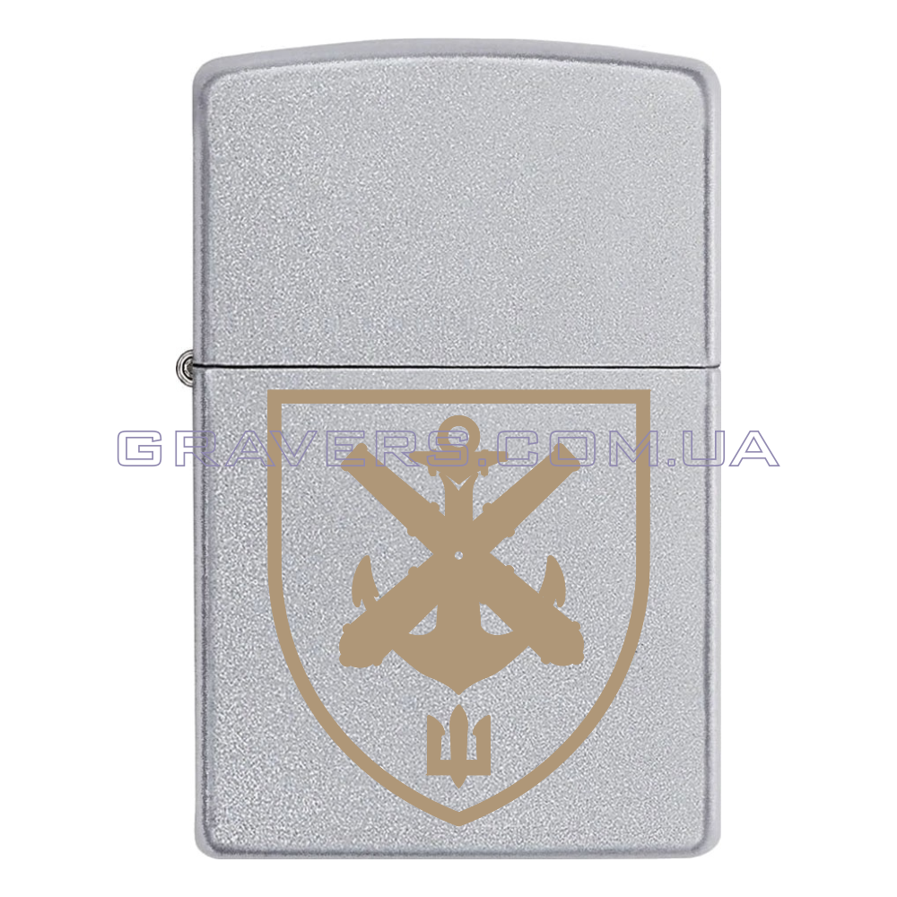 Оригінальна запальничка Zippo Classic Chrome - класична бензинова запальничка Zippo сріблястого кольору з індивідуальним гравіюванням знаку  406-та окрема артилерійська бригада імені генерал-хорунжого Олексія Алмазова (406 ОАБр)