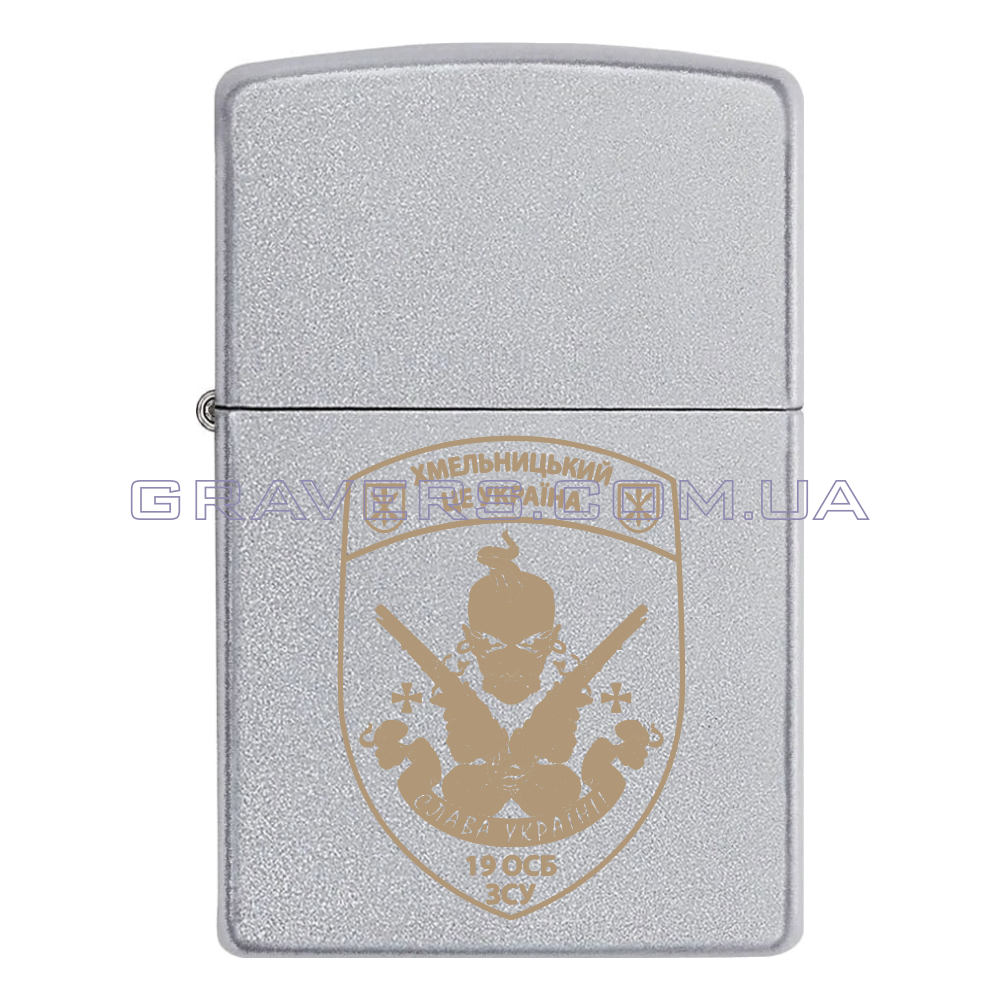 Оригінальна запальничка Zippo Classic Chrome - класична бензинова запальничка Zippo сріблястого кольору з індивідуальним гравіюванням знаку 19-й окремий стрілецький батальйон (19 ОСБ)