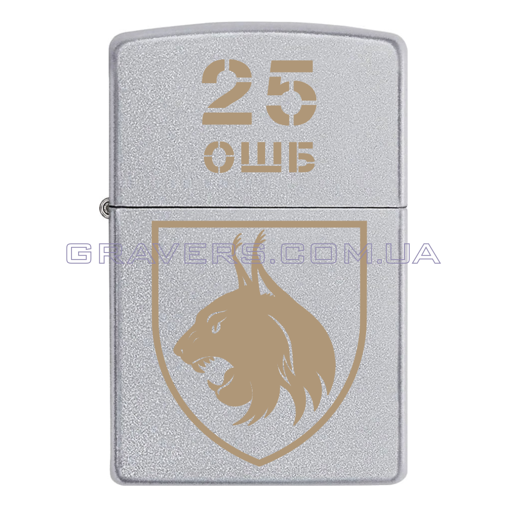 Оригінальна запальничка Zippo Classic Chrome - класична бензинова запальничка Zippo сріблястого кольору з індивідуальним гравіюванням знаку 25-й Окремий Штурмовий Батальйон (25 ОШБ)