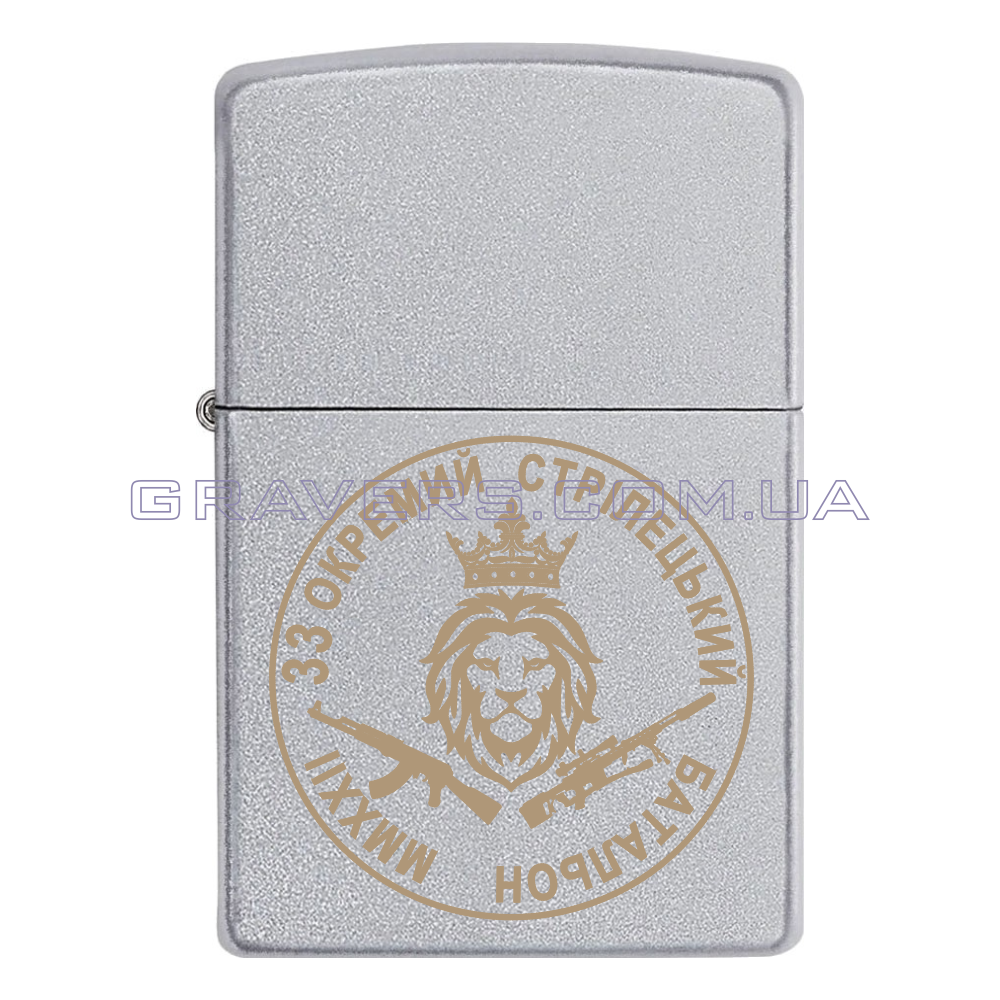 Оригінальна запальничка Zippo Classic Chrome - класична бензинова запальничка Zippo сріблястого кольору з індивідуальним гравіюванням знаку 33 Окремий стрілецький батальйон (33 ОСБ)