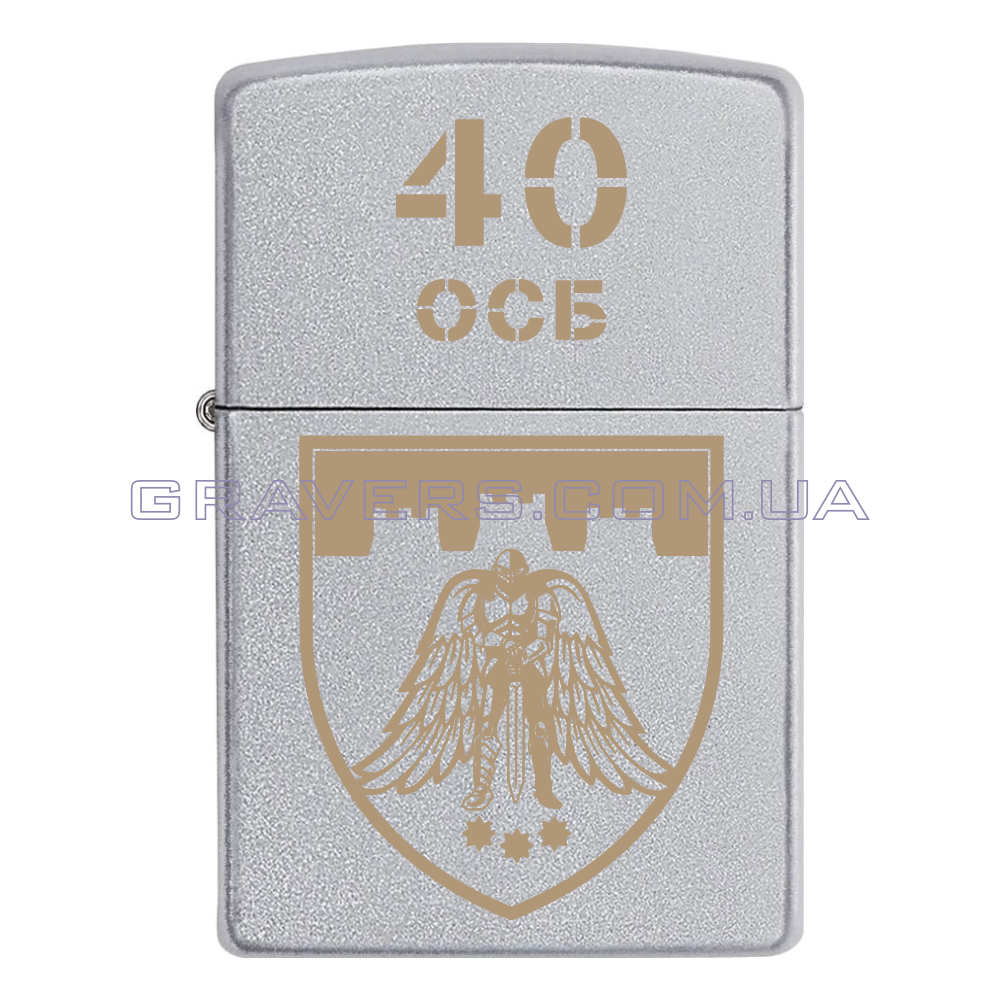 Бензинова запальничка Zippo Classic Chrome з гравіюванням знака 40 окремий стрілецький батальйон (40 ОСБ)