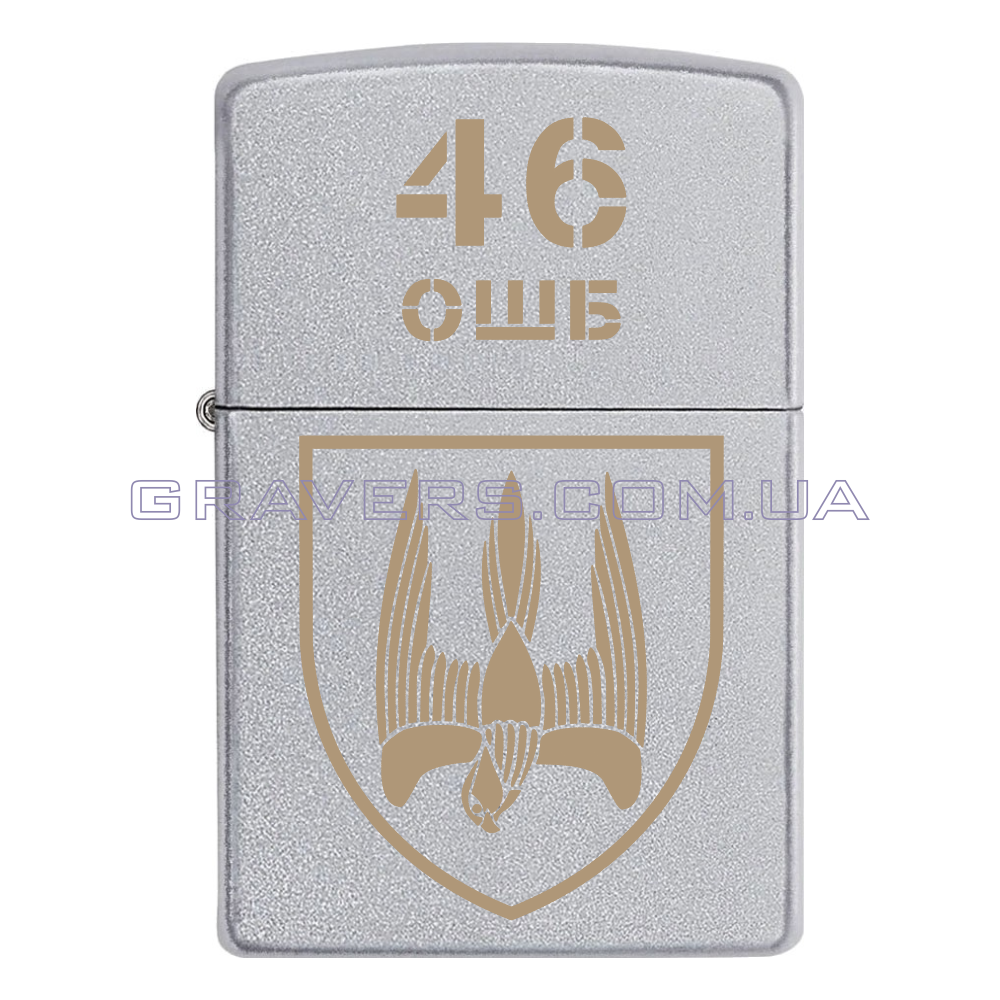 Бензинова запальничка Zippo Classic Chrome з гравіюванням знака 46-й окремий штурмовий батальйон «Донбас» (46 ОШБ)