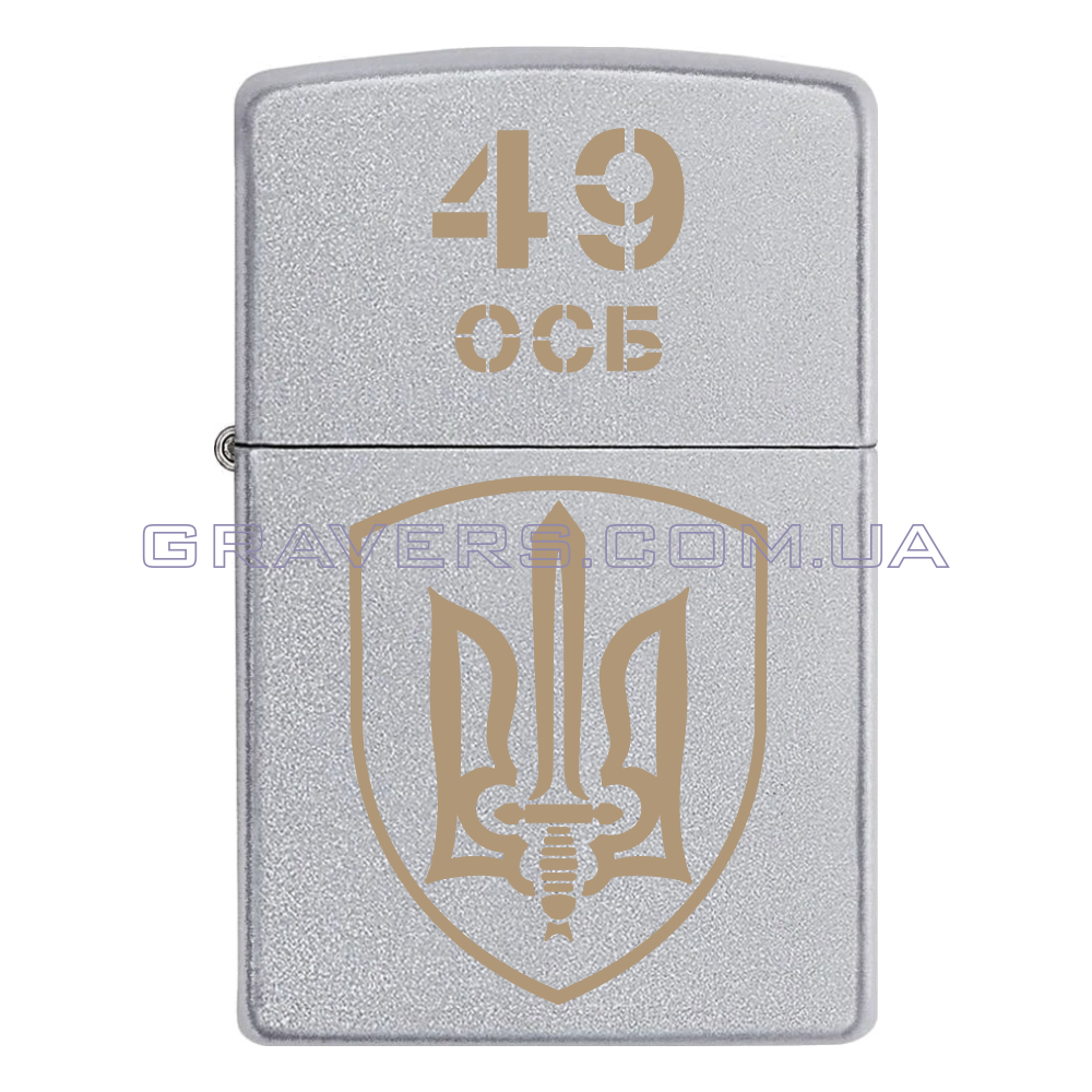 Оригінальна запальничка Zippo Classic Chrome - класична бензинова запальничка Zippo сріблястого кольору з індивідуальним гравіюванням знаку 49 окремий стрілецький батальйон «Карпатська Січ» (49 ОСБ)