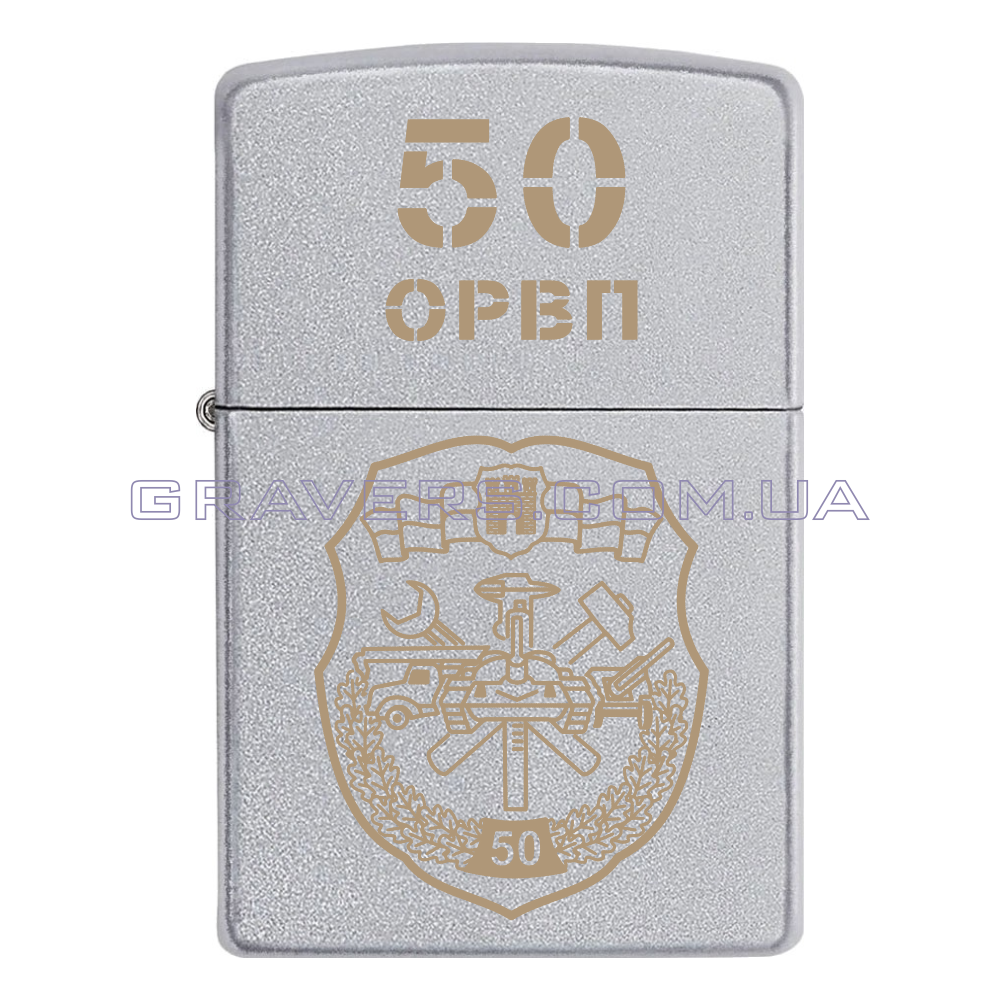 Оригінальна запальничка Zippo Classic Chrome - класична бензинова запальничка Zippo сріблястого кольору з індивідуальним гравіюванням знаку 50-й окремий ремонтно-відновлювальний полк (50 ОРВП, в/ч А1586)