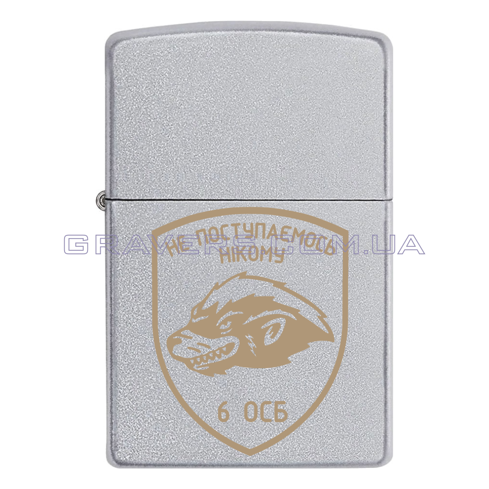 Оригінальна запальничка Zippo Classic Chrome - класична бензинова запальничка Zippo сріблястого кольору з індивідуальним гравіюванням знаку 6-й окремий стрілецький батальйон (6 ОСБ)