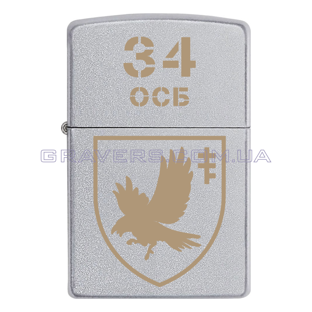 Оригінальна запальничка Zippo Classic Chrome - класична бензинова запальничка Zippo сріблястого кольору з індивідуальним гравіюванням знаку - 34 окремий стрілецький батальйон (34 ОСБ)