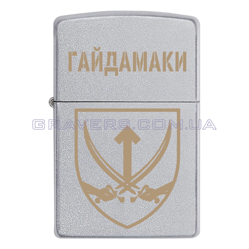 Оригінальна запальничка Zippo Classic Chrome - класична бензинова запальничка Zippo сріблястого кольору з індивідуальним гравіюванням знаку - Окремий батальйон спеціального призначення Гайдамаки