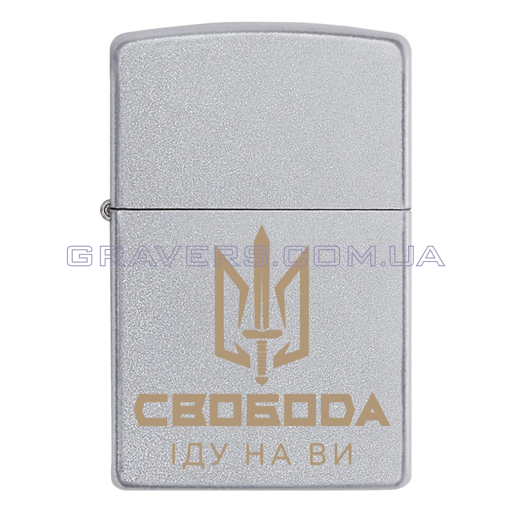 Оригінальна запальничка Zippo Classic Chrome - класична бензинова запальничка Zippo сріблястого кольору з індивідуальним гравіюванням емблеми - Батальйон «Свобода» — формування Національної гвардії України (НГУ)